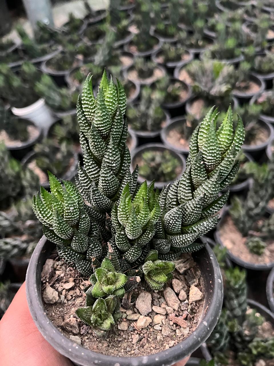 It seems like you might be referring to Haworthiopsis reinwardtii (formerly Haworthia reinwardtii), which is a popular succulent species in the Haworthiopsis genus. This plant is known for its distinctive, columnar rosettes of tightly packed, triangular leaves, often adorned with white tubercles or spots, creating a striking pattern. It’s a favorite among succulent enthusiasts for its unique appearance and ease of care.