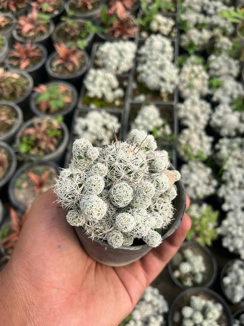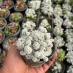 • Shape: Mammillaria vetula typically forms a small, spherical or cylindrical stem that can grow to about 2-4 inches (5-10 cm) in diameter and 3-6 inches (7-15 cm) in height. The stem is covered in tubercles (small, rounded projections) rather than ribs, which is characteristic of Mammillaria species.