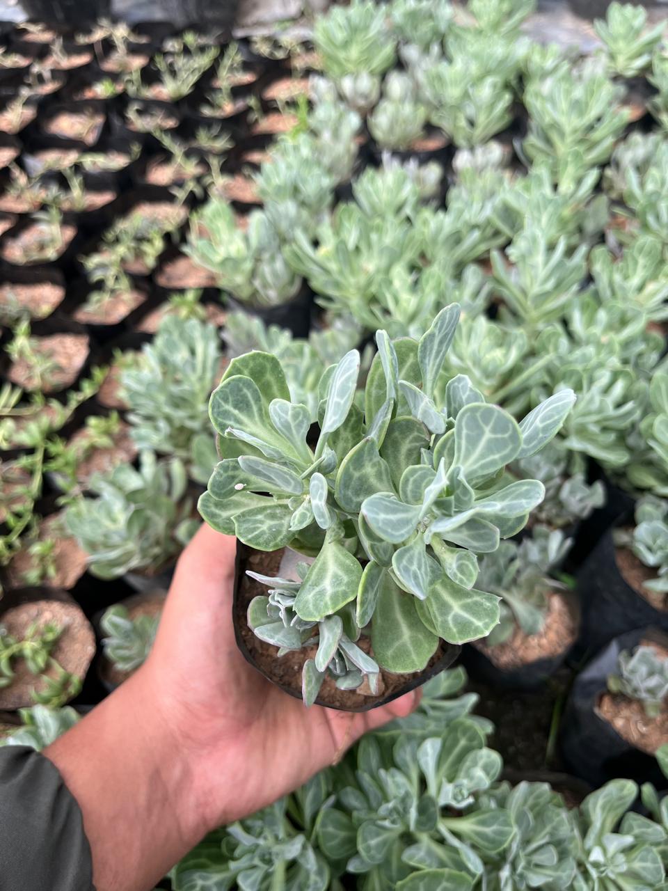 - Leaves: The plant features distinctive, rounded to slightly obovate (egg-shaped) leaves, which are the source of its name. The leaves are generally dark green and have a smooth or slightly toothed edge. They form a basal rosette at the base of the plant.