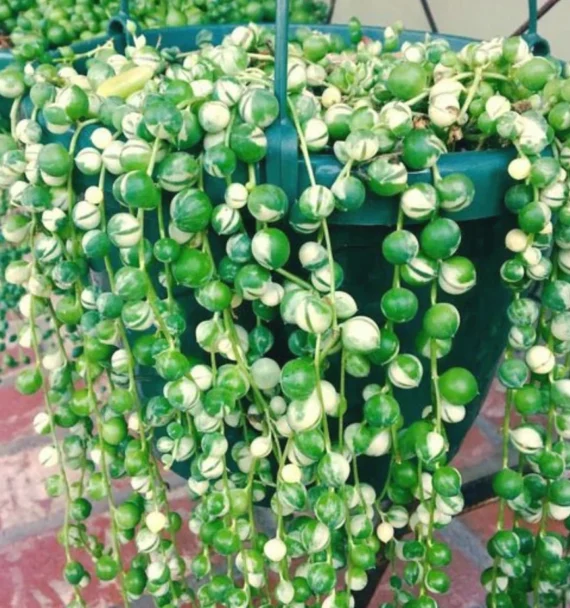- Leaves: The plant features small, round, bead-like leaves that resemble pearls. In the variegated variety, these leaves are typically green with creamy white or pale yellow stripes or spots, creating a beautiful contrast and a unique appearance.